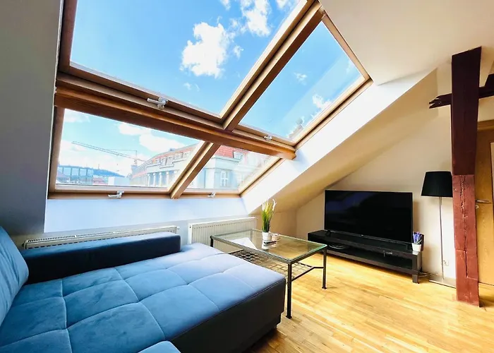 Bu 70 m^2lik daire Prag Ulusal Tiyatrosu'a 650 metre uzaklıkta ve Národní metro durağına 5 dakikalık yürüme mesafesindedir. Lego Müzesi yakın bulunur ve Karl Köprüsü 1 km uzaklıktadır. Chocafé, Avrupa yemeklerini sunmakta ve tesise 200 metre uzaklıkta bulunmaktadır. Bu daire Prag'a kısa sürüş uzaklığında yer alır.